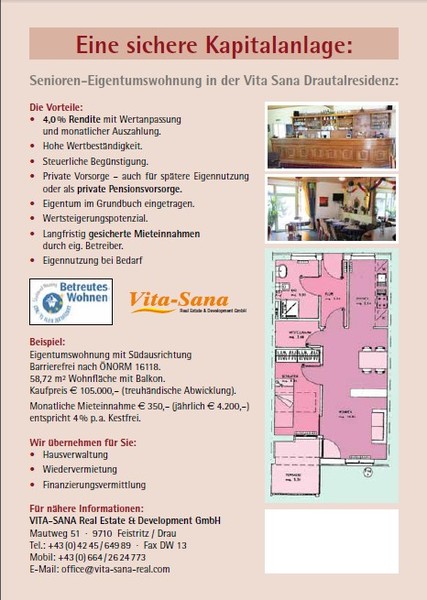 | Verkäufer / Vermieter / Vermittler | | Name: | Thomas Supersberger | | Strasse: | Mautweg 51 | | Plz / Ort: | 9710 Feistritz | | Mobil Nr.: | 06643421274 | | Telefon: | 0424564989 | | Firma: | Vita Sana Real Estate & Develo | | E-Mail: | t.supersberger@vita-sana-real.com | | Refnr: | 20856 |