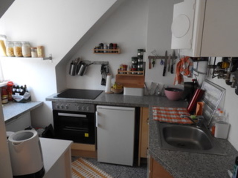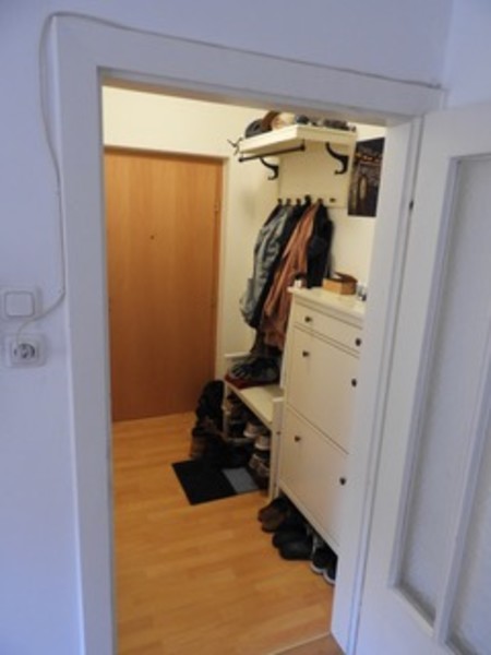 •gute Raumaufteilung: Vorraum, Bad mit Dusche/WC und Tageslicht durch Oberlichtfenster, Wohnzimmer, Küche voll ausgestattet mit Geschirrspüler, Cerankochfeld mit Backrohr und Bar am Fenster, ruhiges Schlafzimmer ausgerichtet in begrünten Innenhof mit sehr großem Einbauschrank, Gasetagenheizung, vorhandener Waschmaschinenanschluss